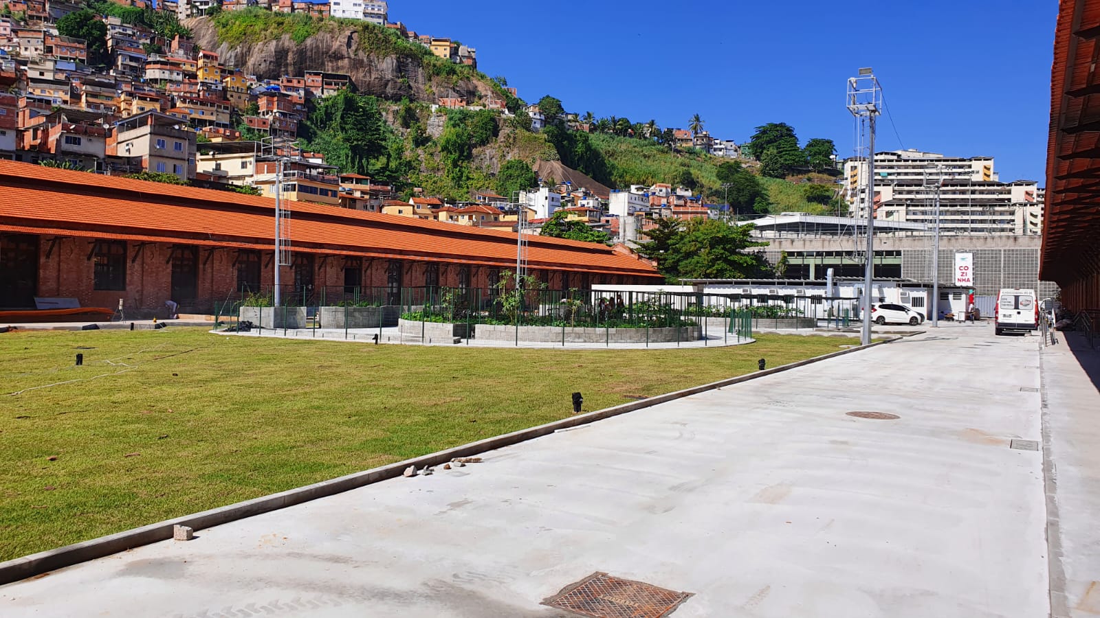 A Obra contempla a execução de Retrofit dos Galpões da Gamboa, sitiados no Bairro da Gamboa, Rio de Janeiro – RJ, que será a nova sede a Ação da Cidadania. O Complexo de edificações internas ao galpões contemplam Áreas Administrativas, Salas de Reuniões e Auditórios, Sanitários, Espaços para Aceleradoras de Projetos Sociais, Cozinha Escola, Restauração e Adequação de Composição Ferroviário para Espaço de Café/Biblioteca. Na área externa está sendo construído uma horta em formado de Mandala, além da revitalização de toda praça. Foi executada uma Cozinha Comunitária Modular que atende até 1000 refeições/dia para a população em vulnerabilidade alimentar.